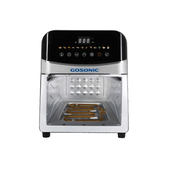 سرخ کن دو المنته گوسونیک با گنجایش ۹ لیتر، توان مصرفی ۲۱۰۰ وات، توان المنت بالایی ۱۶۰۰ وات و توان المنت پایینی ۵۰۰ وات، بدنه کاملا استیل، قابلیت تنظیم درجه حرات از ۱۰۰ تا ۲۰۰ درجه سانتیگراد، تایمر ۱۲۰ دقیقه ای، دارای دوازده برنامه پخت متنوع شامل: سیب زمینی سرخ کرده، تکه های مرغ، بال و کتف کبابی، ماهی، گوشت، میگو، تکه های گوشت کبابی، پیتزا، قارچ، سبزیجات، چیپس، کیک، دارای طراحی جدید در قسمت ظرف سرخ کن که در حین پخت میتوانید مراحل پخت و میزان مواد غذایی را مشاهده کنید، دارای لامپ داخلی، پوشش داخلی ظرف سرخ کن از جنس سرامیک با کیفیت فوق العاده بالا، قابلیت تنظیم درجه حرارت و تایمر بصورت دلخواه، فضای داخلی سرخ کن کاملا گالوانیزه میباشد که در اکثر سرخ کن ها پلاستیک میباشد