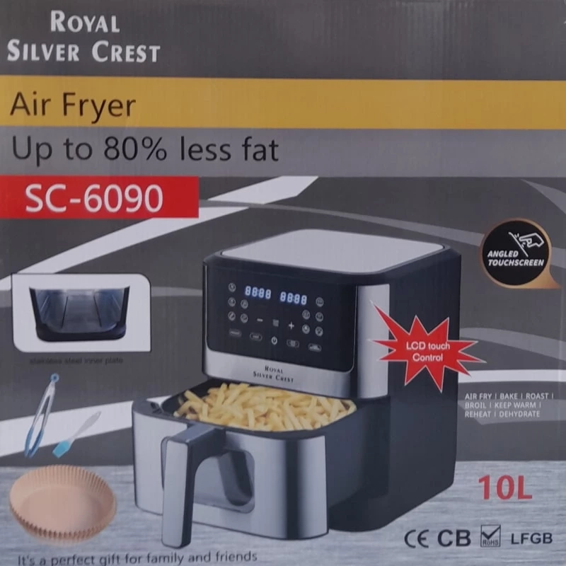 این سرخ کن سیلور کرست با توان واقعی 1800 وات قدرت دارد. جنس بدنه از استیل ضد زنگ میباشد. این محصول تحت لیسانس کشور آلمان بوده و به دلیل ارزان بودن نیروی کار در کشور چین مونتاژ میشود. صحفه نمایشگر سرخ کن سیلور کرست SC-6090 از نوع دیجیتال بوده و صحفه نمایشگر لمسی هست. با این سرخ کن سیلور کرست دیگر نیازی به روغن اضافی نیست و میتوانید بدون روغن یا با مقدار بسیار کمی روغن شروع به درست کردن مواد غذایی با همان کیفیت و طعم واقعی همچون سرخ کردن در روغن را درست نمایید و برای همیشه از دست روغن های مضر راحت شوید. جنس کاسه داخل محفظه از تفلون نچسپ بوده و به راحتی قابل تمیز کردن هست. و همچنین در داخل محفظه سرخ کن یک عدد فن قرار دارد که در هنگام استفاده از سرخ کن شروع به کار می کند و باعث میشود تا گردش هوای سریع و یکنواخت به مواد غذایی درون سرخ کن بدهد. دارای 8 برنامه غذایی پخت میباشد و با آن میتوان انواع گوشت قرمز، مرغ، پیتزا، کیک، میگو و ماهی و سیب زمینی تهیه نمود. مقدار تنظیم دمای حرارتی تا حداکثر 200 درجه دارد و همچنین زمان تا 60 دقیقه میتوان تنظیم نمود. در پایین سرخ کن 4 عدد لاستیک لرزه گیر قرار دارد که باعث میشود در هنگام استفاده از محصول، دستگاه ثابت در جای خود نگه بماند و از لرزش های احتمالی جلوگیری میکند. طول سیم به کار رفته در سرخ کن به طول 80 سانتی متر میباشد.